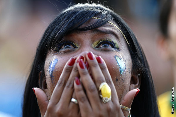 Ужас на лице еще одной бразильской болельщицы.