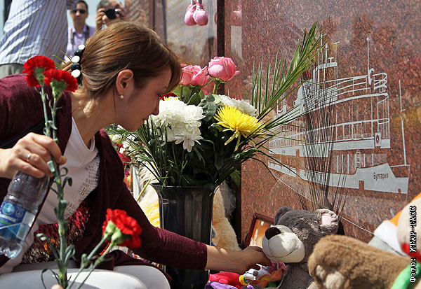 Родственники около мемориала в память погибших на теплоходе "Булгария".