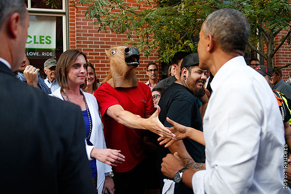 Рукопожатная лошадь встретила президента Барака Обаму в Денвере.