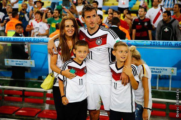 Мирослав Клозе с женой и сыновьями на стадионе Маракана.