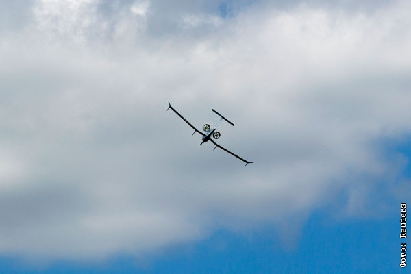 Электрический самолет Tekever во время маневра над Фарнборо.