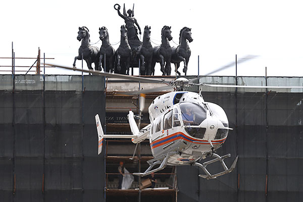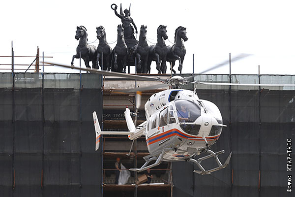 Вертолет МЧС, прибывший на место аварии между станциями "Славянский бульвар" и "Парк победы".