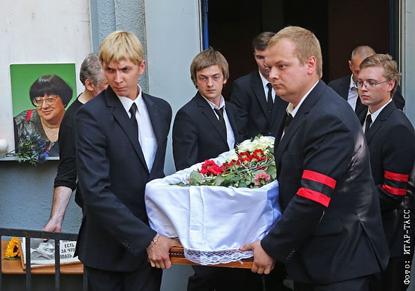Вынос гроба с телом правозащитницы Валерии Новодворской после церемонии прощания в Сахаровском центре.
