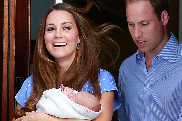 Кейт и Уильям на пороге больницы Святой Марии, где на свет появился их первенец Джордж.