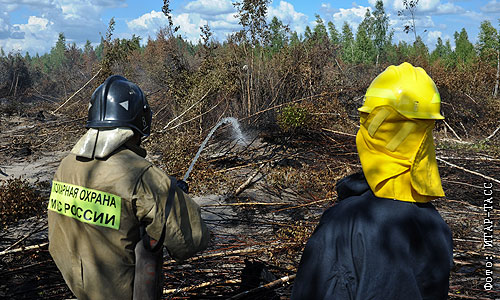 Сотрудники МЧС во время тушения торфяников в Шатурском районе.