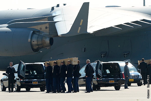 Нидерландский С-130 "Геркулес" с останками 16 погибших был отправлен в Эйндховен из Харькова около полудня по местному времени (13:00 по Москве). Через час вылетел австралийский самолет С-17 "Глоубмастер" с 40 телами на борту.