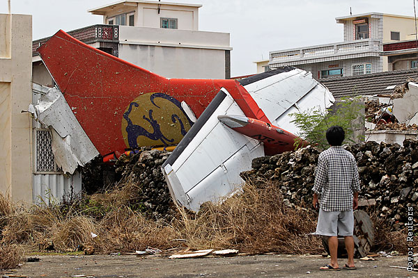 Крушение легкого двухмоторного турбовинтового самолета ATR 72-500 произошло в среду вечером. Рейс вылетел из города Гаосюн с задержкой из-за плохой погоды. По пути следования экипаж попытался уклониться от Тайфуна Матмо, но не справился с сильным ветром. В результате авиакатастрофы погибли 48 человек.