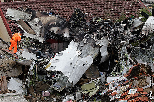 Обломки самолета на крыше жилого дома.