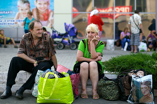 Жители Горловки на автовокзале. В городе Горловка Донецкой области в результате артобстрела за сутки погибли 17 мирных жителей, среди них трое детей, ранены 43 человека, сообщил во вторник городской совет. В связи с трагическими событиями в городе с 29 июля объявлен трехдневный траур.