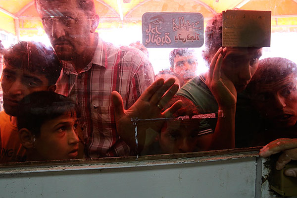 Жители Газы всматриваются в окна микроавтобуса в поисках раненых и убитых родственников.