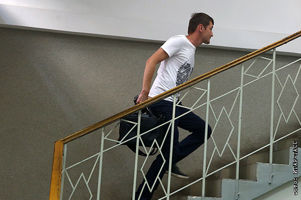 Брат Навального (Олег) поднимается по лестнице в здании Замоскворецкого суда.