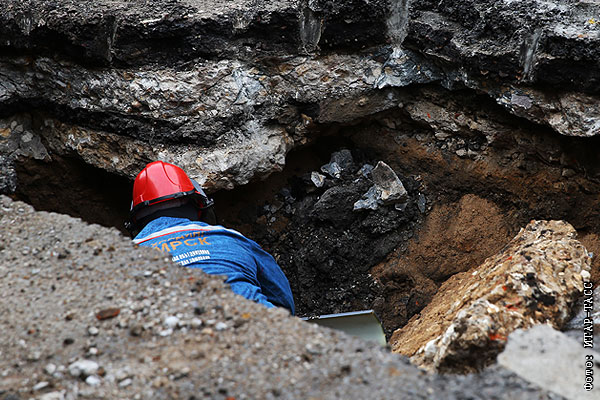 Около 14:30 произошел провал асфальта в районе дома 30 на улице Тверская.