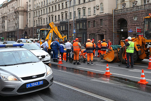 Около 14:30 произошел провал асфальта в районе дома 30 на улице Тверская.