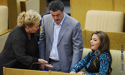 Заместитель председателя Государственной Думы Любовь Слиска, заместитель председателя комитета ГД по делам Содружества Независимых Государств и связям с соотечественниками Арсен Фадзаев и заместитель председателя комитета ГД по делам молодежи Алина Кабаева (слева направо) на пленарном заседании Государственной думы РФ