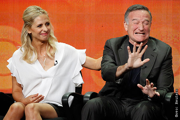 Сара Мишель Геллар и Робин Уильямс на пресс-конференции к телесериалу канала CBS "Сумасшедшие".
