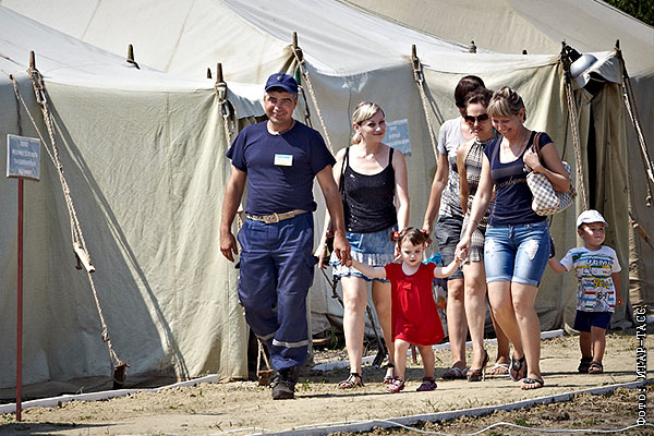 Транзитный пункт временного размещения беженцев в Луганской области.