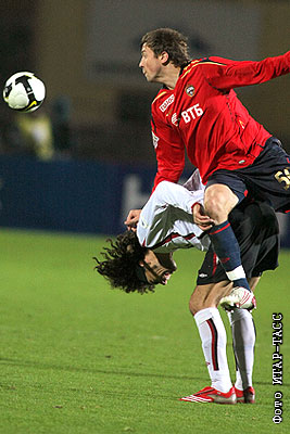 Игрок "Москвы" Эктор Бракамонте и армеец Антон Григорьев (слева направо) в матче чемпионата России по футболу: "Москва" – ЦСКА