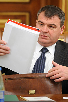 Министр обороны России Анатолий Сердюков перед началом заседания правительства РФ