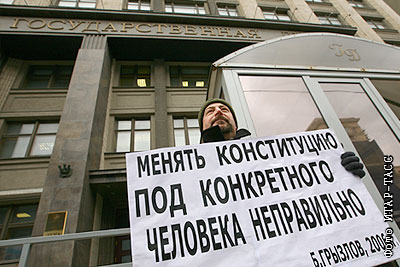 Во время одиночного пикета против поправок в Конституцию у здания Государственной думы РФ