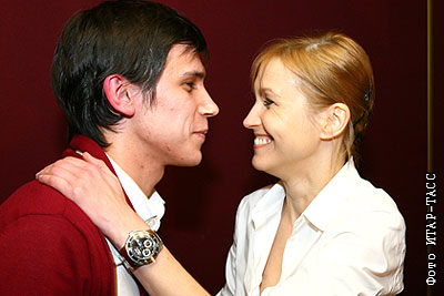 Актеры Леонид Бичевин и Ингеборга Дапкунайте перед началом премьеры фильма "Морфий" в кинотеатре "Киномир"
