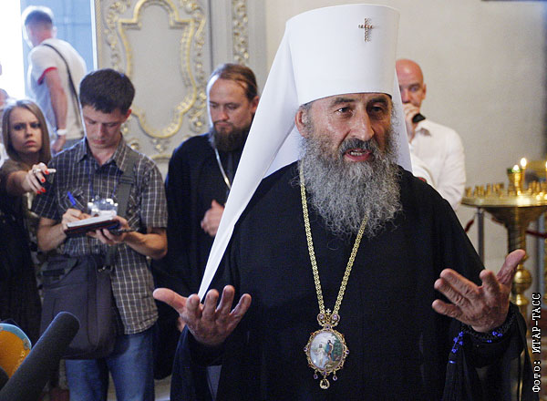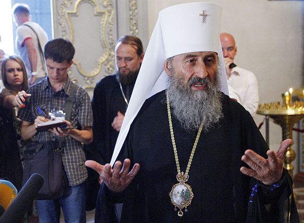 Новый предстоятель УПЦ МП митрополит Онуфрий во время пресс-конференции в Киево-Печерской Лавре.