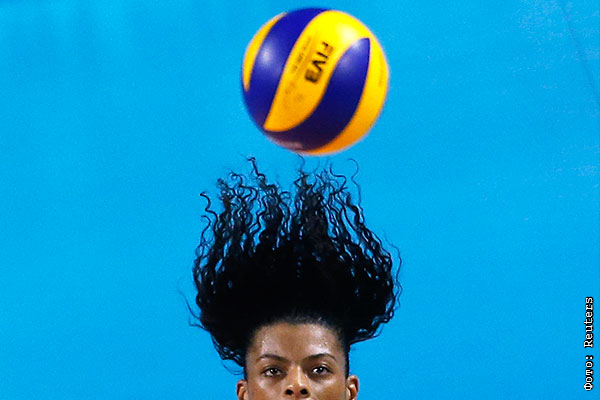 Мировое первенство по волейболу. Бразильская спортсменка Фернанда Родригес и мяч.