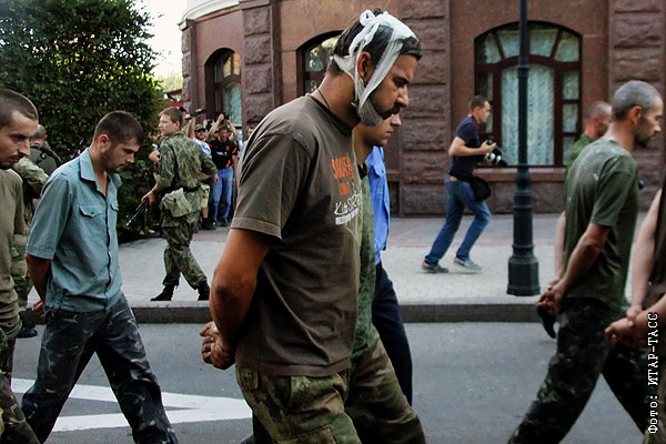В День независимости Украины власти "Донецкой народной республики" устроили в центре Донецка выставку подбитой техники и провели по городу колонну военнопленных.
