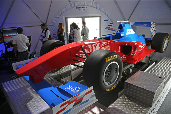 Гоночный болид Формулы 1 в автопарке "Сочи Автодром" на Московском международном автосалоне.
