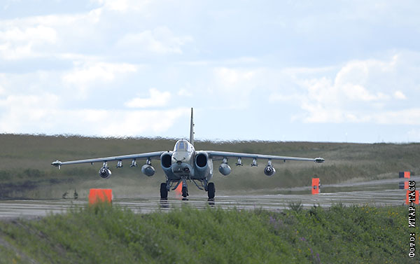 Российский штурмовик Су-25 с боекомплектом приземлился на обычную автодорогу во время учений Восточного военного округа.