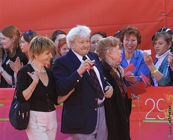 Актеры Инна Макарова и Донатас Банионис на торжественной церемонии открытия XXIX Московского международного кинофестиваля у кинотеатра "Пушкинский", 2007 год.