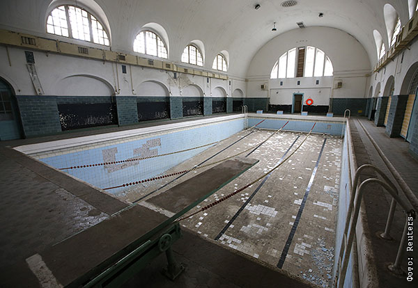 К моменту вывода группы у нее на вооружении состояло около 1,5 тыс. единиц авиатехники, примерно 1000 единиц разного рода бронетехники, несколько тысяч танков. Всего из Германии было вывезено около трех миллионов тонн материальных средств, среди которых около 700 тысяч тонн - боеприпасы. На фото бассейн в здании штаба ЗГВ, наше время.