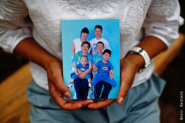 Семейное фото в руках женщины, чей муж был на борту пропавшего "Боинга".