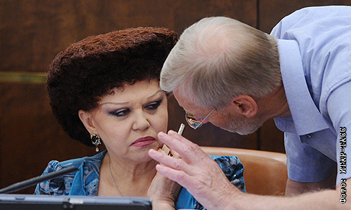 Председатель комитета Совета Федерации по социальной политике и здравоохранению Валентина Петренко и председатель комитета Совета Федерации по образованию и науке Юрий Солонин на заседании Совета Федерации РФ.