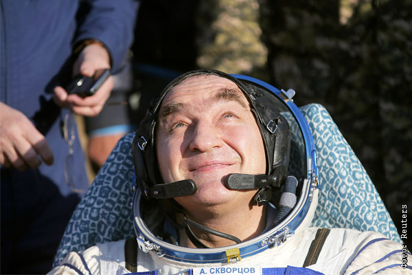 Российский космонавт Александр Скворцов после возвращения на Землю.