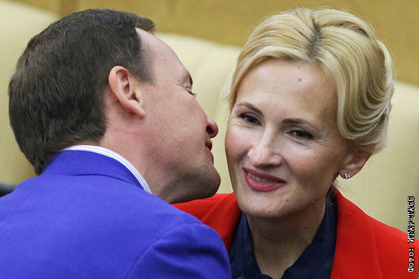Заместитель председателя комитета ГД по жилищной политике и жилищно-коммунальному хозяйству Александр Сидякин и председатель комитета ГД по безопасности и противодействию коррупции Ирина Яровая перед началом пленарного заседания.