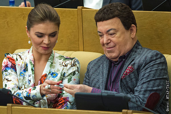 Алина Кабаева и Иосиф Кобзон во время рассмотрения в первом чтении изменений в закон "О федеральном бюджете на 2013 год и на плановый период 2014 и 2015 годов".