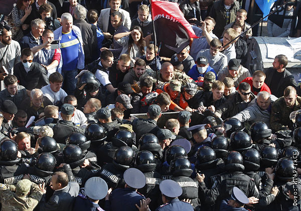 Вчера на площадь Конституции вышли сторонники закона об очищении власти. Митингующие скандировали "Люстрация!", бросали в сторону здания Рады яйца, жгли мусор и автомобильные покрышки.