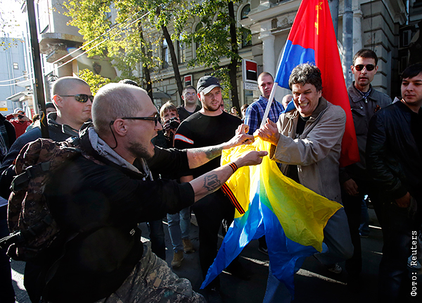 Сторонники ДНР и ЛНР во время антивоенного марша.