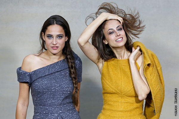 Французские писательницы Анна и Клер Берес во время фотоколла перед показом Карла Лагерфельда.