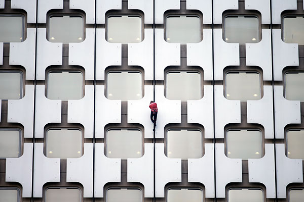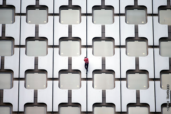 Покоритель небоскребов забирается на Ariane Tower – 152-метровую башню на западе Парижа. Март 2014.