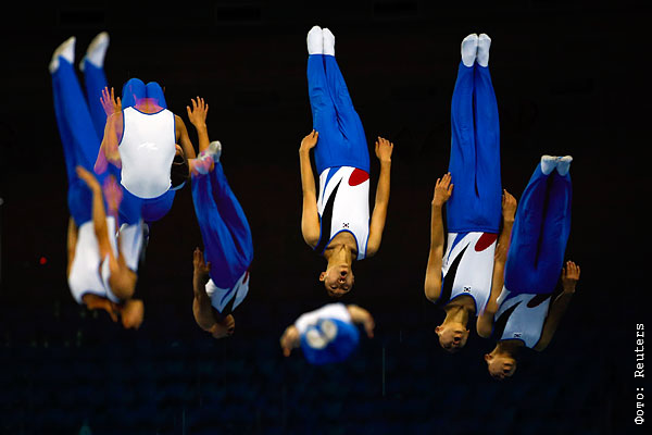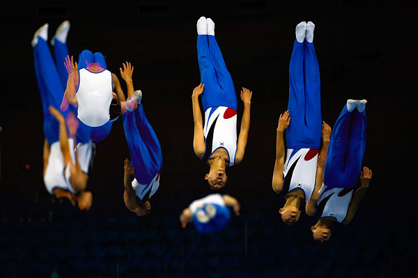 Во время соревнований по прыжкам на батуте среди мужчин на Азиатских играх-2014 в Инчхоне.