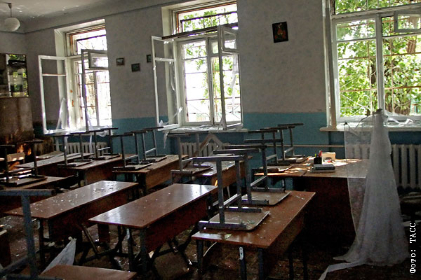 Еще один снаряд попал в донецкую школу №57 в первый день учебного года, который в ДНР начался с опозданием на месяц.