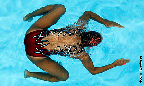 Спортсменка из Египта во время выступления на чемпионате мира FINA по водным видам спорта в Шанхае.