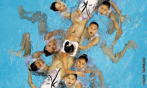 Спортсменки из Гонконга во время выступления на чемпионате мира FINA по водным видам спорта в Шанхае.