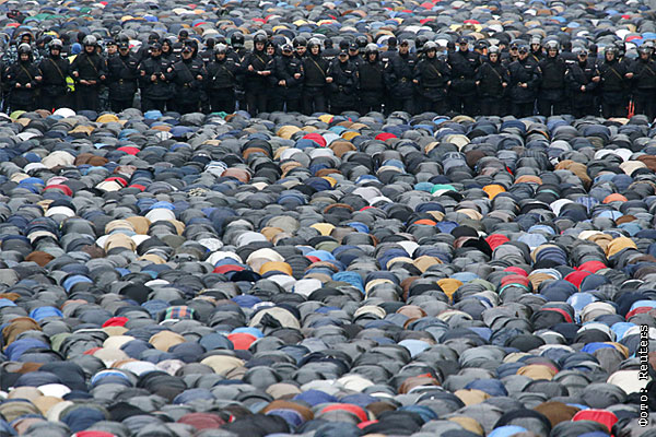 Около 130 тысяч мусульман отметили Курбан-байрам на улицах столицы. 50 тысяч верующих собрались возле Московской соборной мечети, столько же - у Мемориальной мечети на Поклонной горе