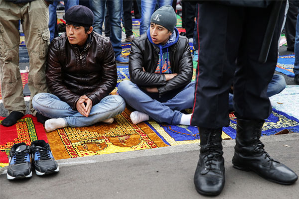 Около 130 тысяч мусульман отметили Курбан-байрам на улицах столицы. 50 тысяч верующих собрались возле Московской соборной мечети, столько же - у Мемориальной мечети на Поклонной горе
