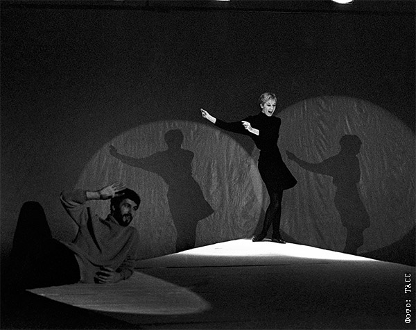 Спектакль "Антимиры" по произведениям Андрея Вознесенского на сцене Театра на Таганке, 1969 год. Алла Демидова читает монолог Мерилин Монро.