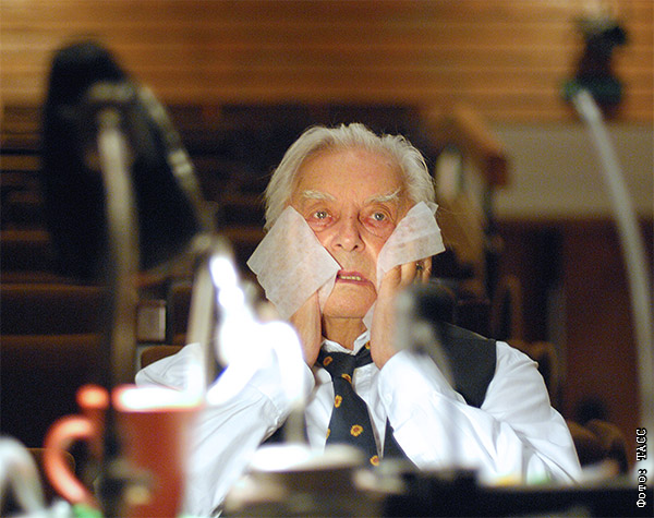 Юрий Любимов перед началом репетиции спектакля "Горе от ума" в день своего 90-летия, 2007 год.