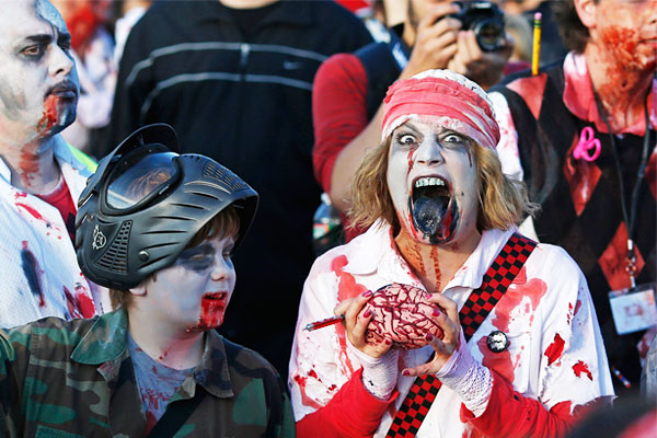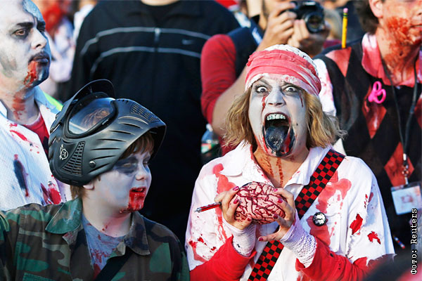 В минувшее воскресенье тысячи любителей зомби встретились в городе Эсбери-парк, штат Нью-Джерси, чтобы установить новый мировой рекорд по самому массовому собранию зомби, а также повысить осведомленность населения о проблемах рака головного мозга
