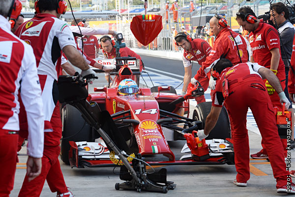 Гонщик команды Ferrari Фернандо Алонсо во время свободных заездов Гран-при России.